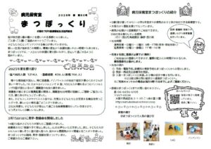 投稿日: 2026年4月30日 投稿者: 前田春のお便りができました。 まつぼっくりの登録方法や保育の様子などを掲載しています。近隣の保育園、区役所、子育てプラザに置いていただいていますので、お見かけの際はぜひお手に取ってご覧ください。